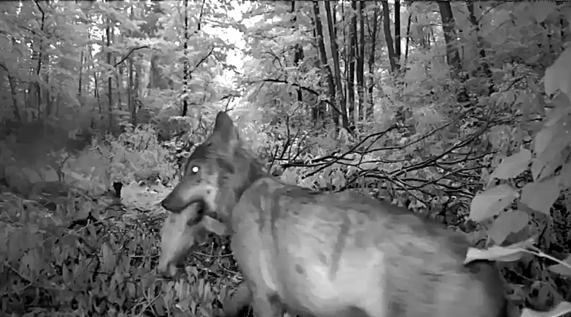 I took a screen grab of the wolf as it briefly looked in the direction of the camera before making its way along the path and into the forest.